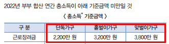 부부 합산 연간 총소득이 아래 기준금액 미만이어야 합니다.