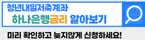청년내일저축계좌는 하나은행 단독판매이므로, 하나은행 해당페이지에서 금리를 확인하실 수 있습니다.